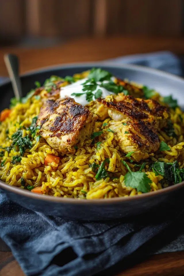 Growing up, dishes like this were reserved for evenings when everyone gathered around the table without rush. Turmeric has long been treasured in many cultures, not just for its earthy flavor but for its vibrant color and healing qualities. In South Asian and Middle Eastern kitchens, turmeric rice often symbolizes comfort, hospitality, and celebration. This particular version combines tender chicken and fragrant rice in one pan, making it practical for busy weeknights while still carrying that sense of tradition and care.